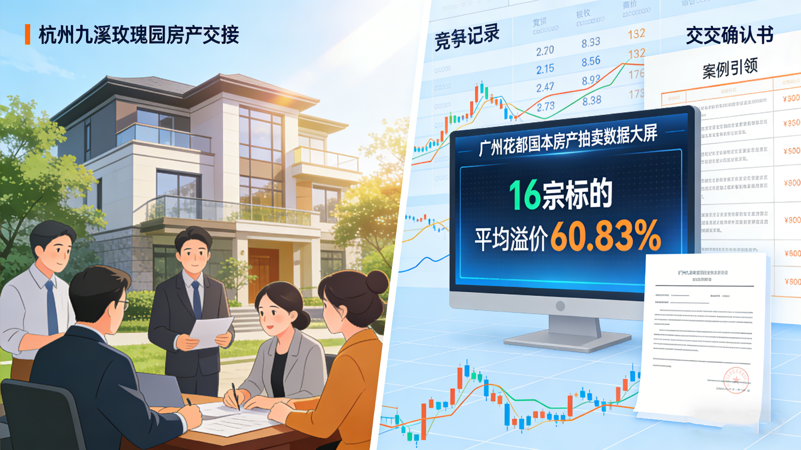 在国有资产盘活领域,公司承办的某国企名下批量商铺拍卖项目,涉及汉润家园、苗林小区等多个小区商铺,标的分布分散、类型多样。公司团队制定“分类策划、统一推广、分批拍卖”的服务方案,对不同区位、面积的商铺进行分类评估定价,针对性制定推广策略;通过线上平台开设专项拍卖专场,线下在各小区周边设置推介点,吸引大量个体经营者与投资者参与。最终,该批商铺全部成功成交,总成交额超2000万元,较评估价溢价12%,既实现了国有资产保值增值,又推动了社区商业业态优化。此外,公司还承办过广州花都16宗国有房产专场拍卖,通过“一标一策”精准筹备、线上线下立体推广,吸引近60名竞买人参与,累计竞价超3000次,16宗标的全部成交,总成交额达1264.63万元,平均溢价率60.83%,最高溢价率88%,以“零流拍、高溢价”的成绩彰显了国有资产市场化处置的专业能力。