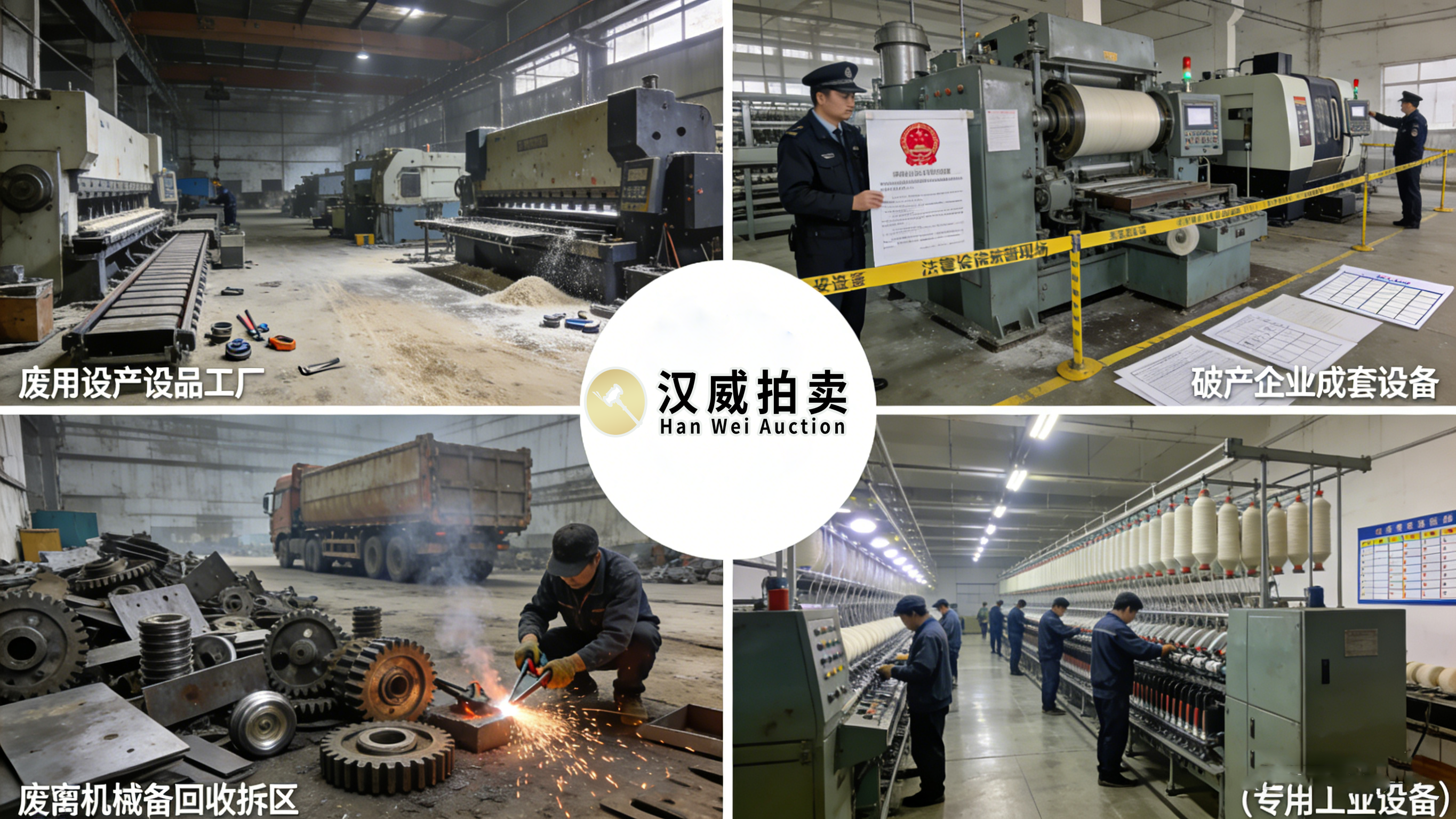 立足机械设备拍卖市场的多元化需求,江苏汉威拍卖精准布局闲置生产设备、破产企业成套设备、报废机械设备、专用工业设备等核心细分场景,结合不同类型设备的特性、处置痛点及政策要求,定制差异化处置方案,适配工业企业、司法机关、国有企业、个体业主等各类委托方诉求。