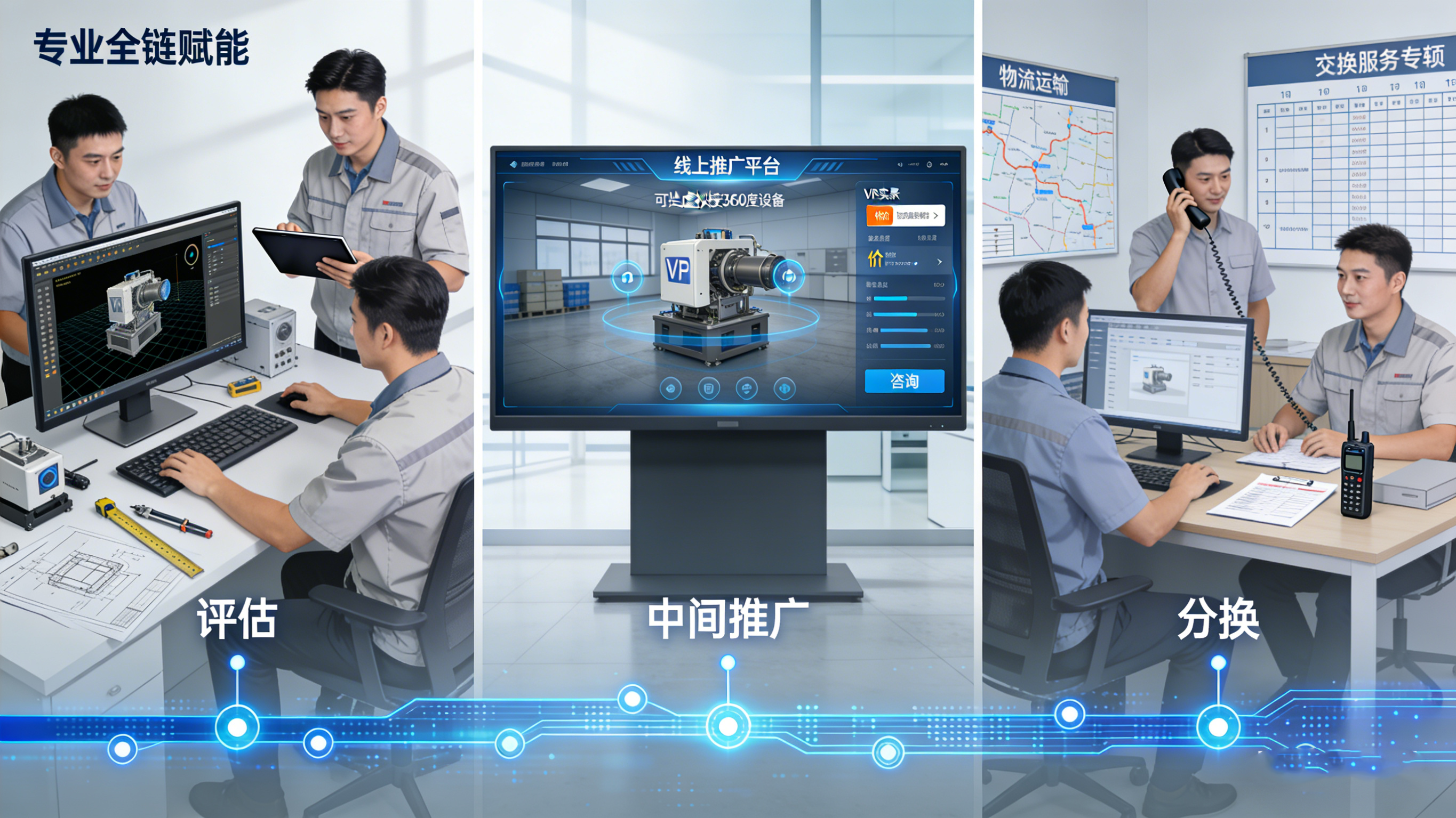 价值评估环节,摒弃单一市场比价模式,联合第三方权威评估机构,采用成本法、市场法、收益法多元模型交叉测算:结合设备工况状态、核心部件价值、市场供需行情、再利用潜力等因素,精准核算资产价值;针对闲置设备,充分考量折旧率与翻新成本,合理制定起拍价;针对报废设备,结合材质成分、回收价格波动,优化定价策略,最大化提升资产残值。市场推广环节,构建“线上全域覆盖+线下精准触达+定向邀约推介”三维矩阵:线上依托自有智能化平台、短视频矩阵、工业资产垂直渠道发布信息,制作设备检测视频、工况演示短片、价值分析报告,扩大信息覆盖面;线下组织集中看样活动,安排机械工程师现场解读设备性能、维修保养要点,协助竞买人实地核验;针对大额成套设备,定向对接全国200余家具备资质的回收商、制造企业,提供一对一专属推介,激发竞价热情。交割服务环节,组建专项服务专班,提供“检测—竞价—运输—拆解”一体化服务,针对异地标的协调专业物流团队,针对特殊设备协助办理环保拆解备案,大幅降低委托方与竞买人的交易成本。