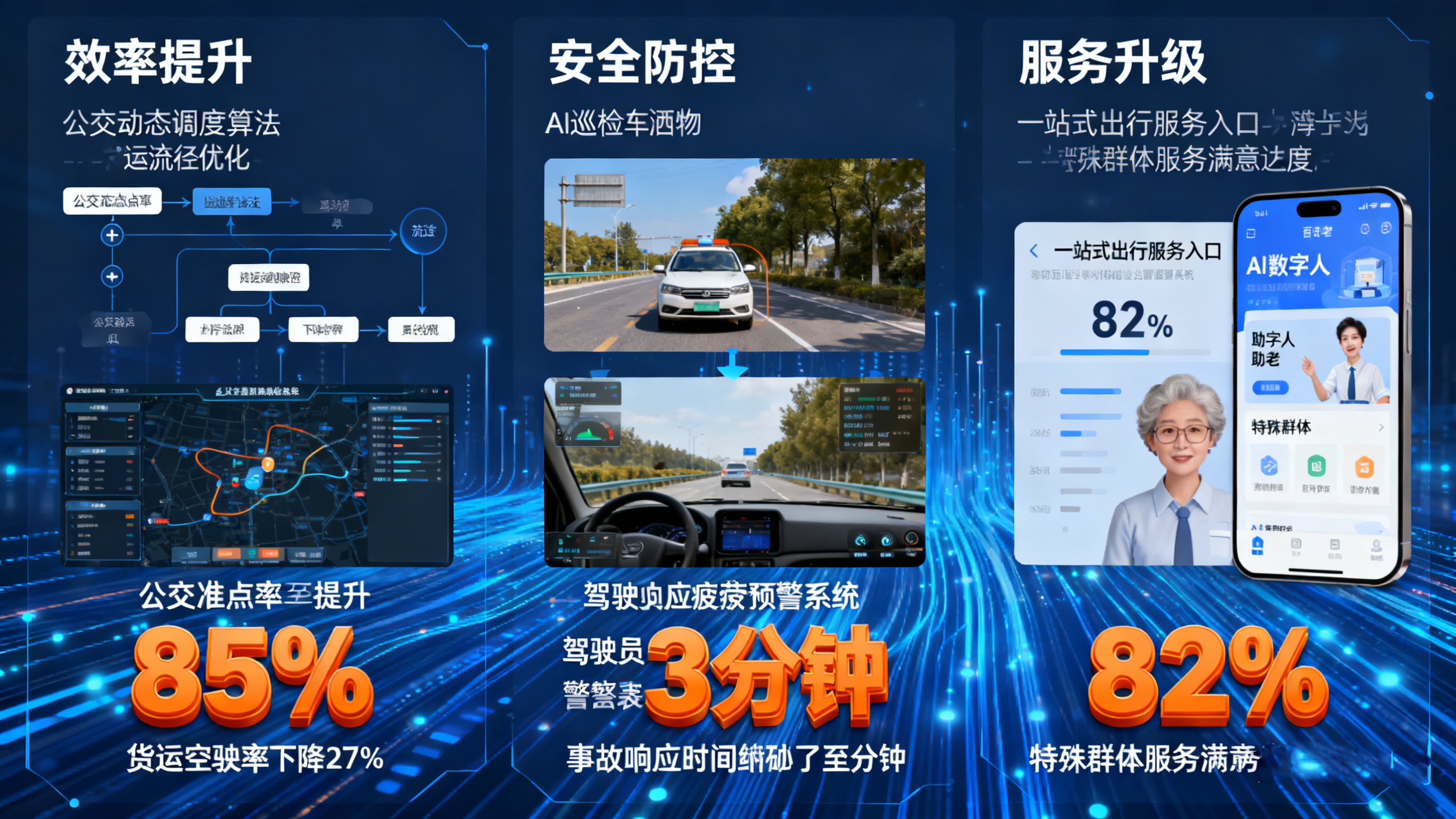 而在高速公路管理中,引入百度信控 SaaS 平台后,徐州绕城高速 6 个关键路口实现信号配时自动优化,车均延误下降 14.3%,通行效率接近贵阳智慧交通改造的标杆水平。